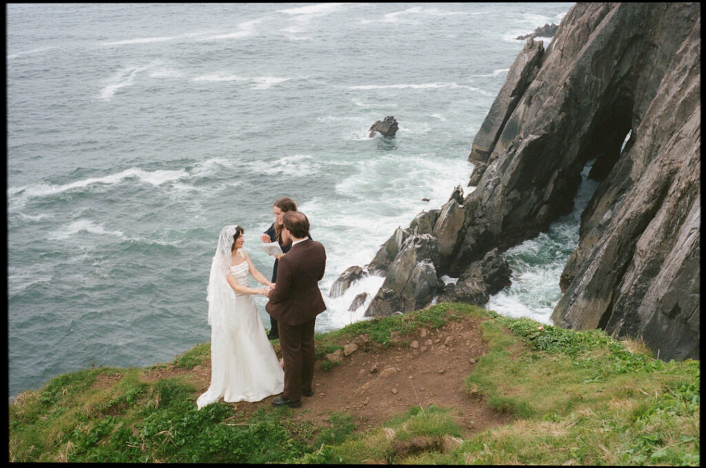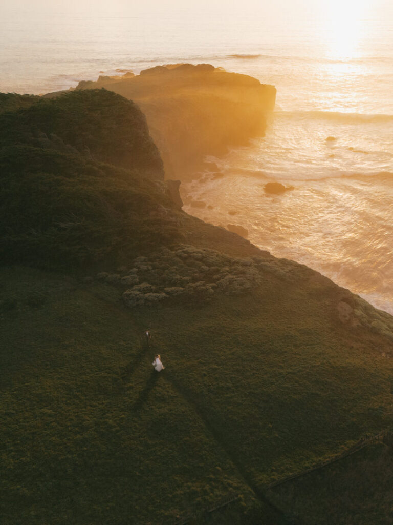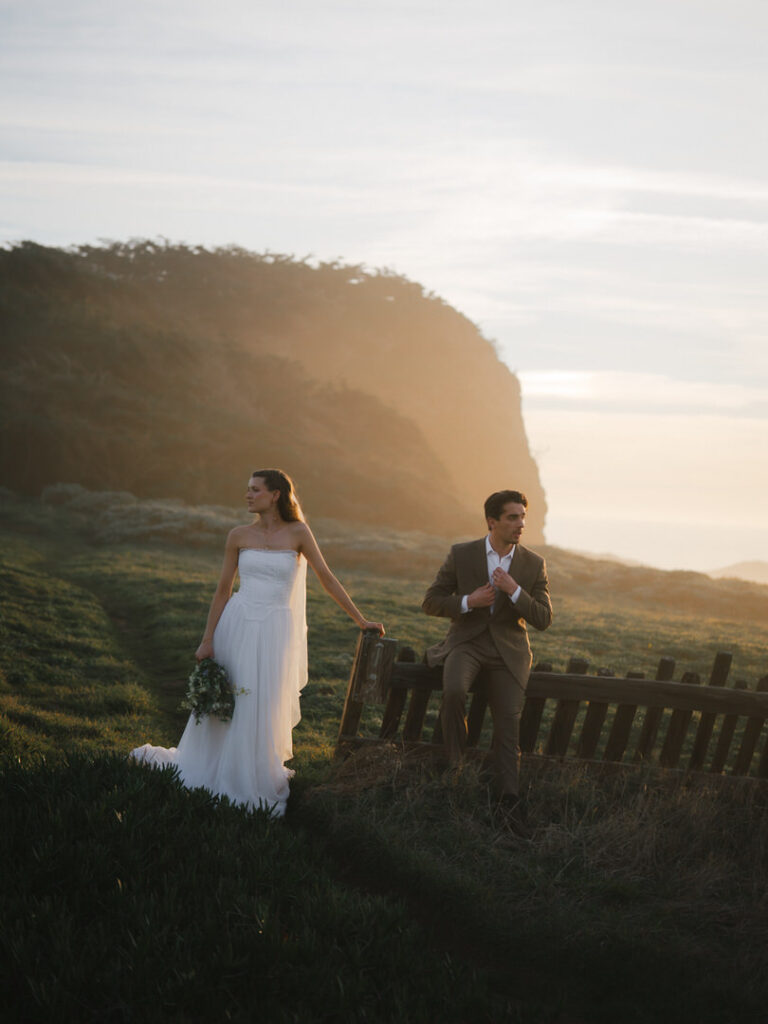 For grooms, soft linen suits in earthy tones also add coastal sophistication without feeling too formal. They photograph beautifully and feel right at home among cliffs, tide pools, and wildflowers.