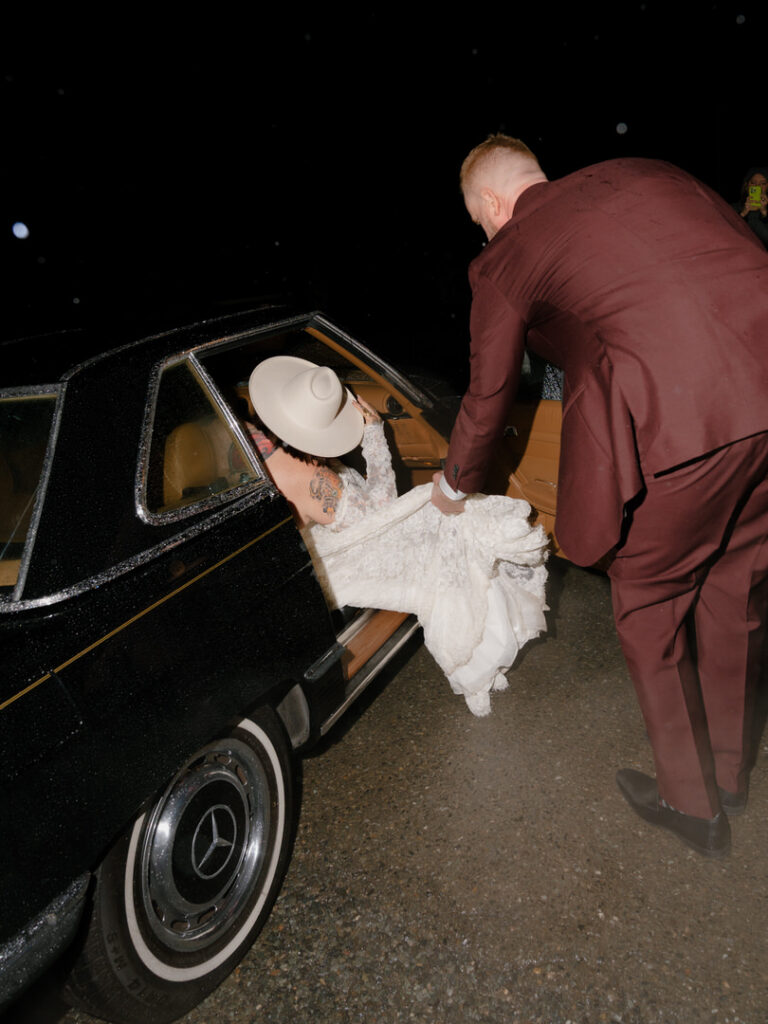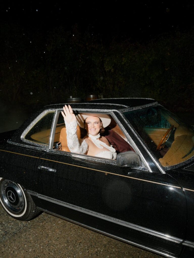Finally, for our couple’s grand exit, they chose a vintage car to getaway in. With the rain outside, it added a movie-like scene that felt perfect for their wedding day.