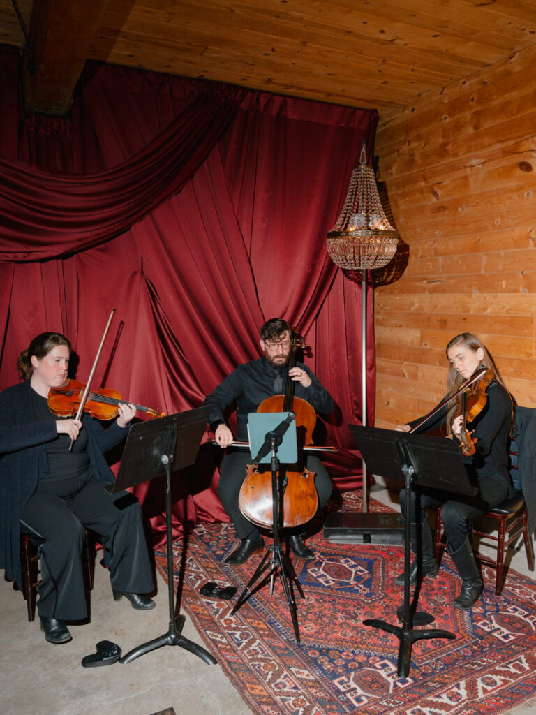Our couple completely transformed Chateau Lill’s barrel room into a romantic soiree. Drinks, appetizers, live string music and a red drapery wall perfect for a photo op.