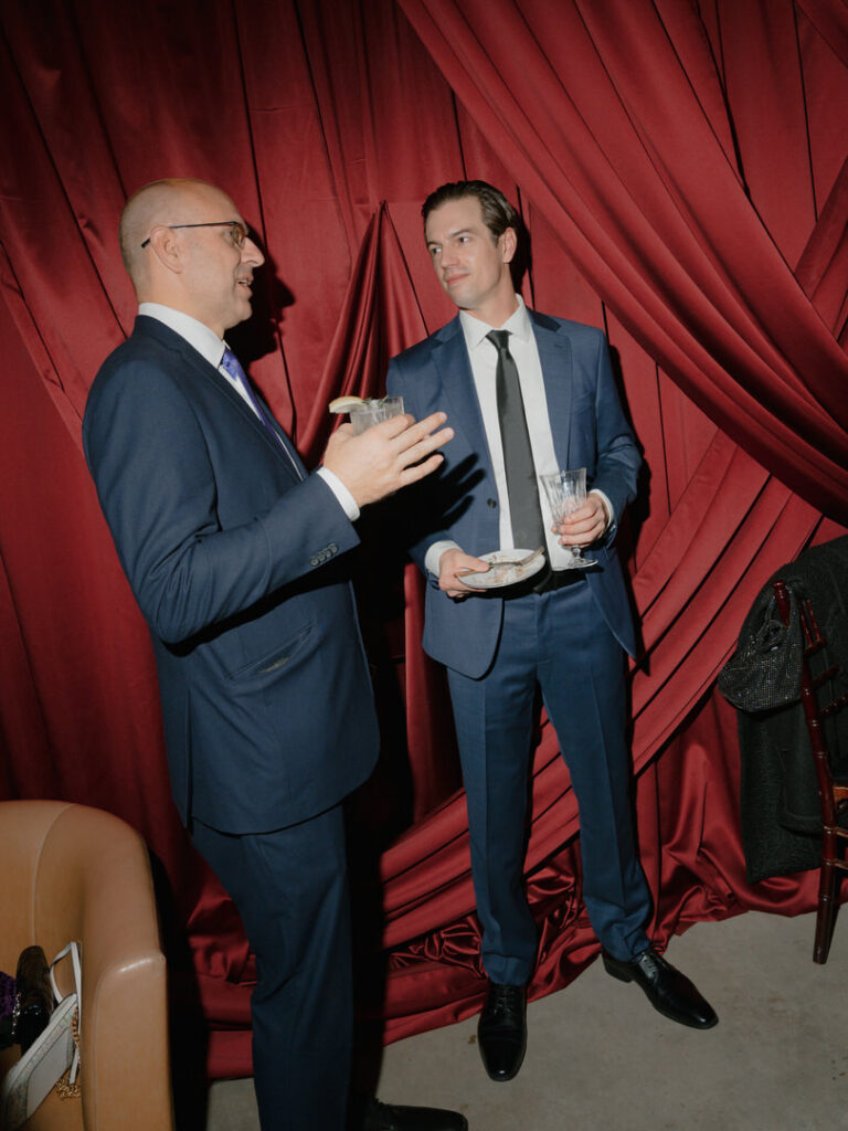 Instead of our original plan of sunset portraits around the vineyards outside, we utilized the empty cocktail hour room. We love how much they popped against this deep red drapery!