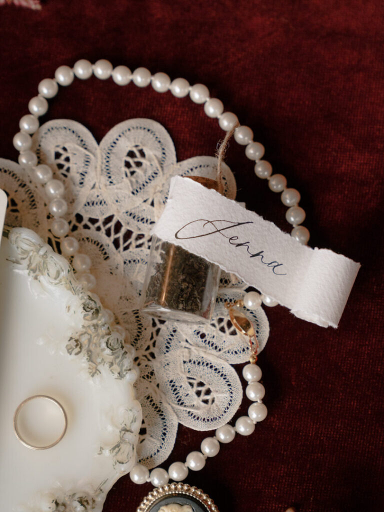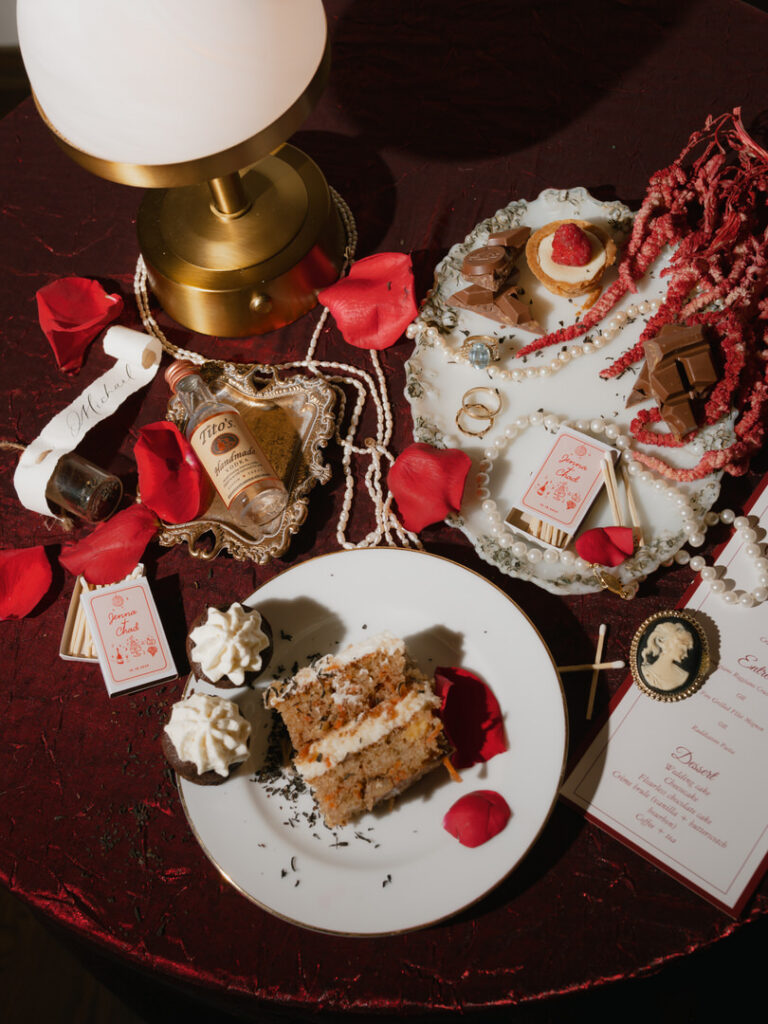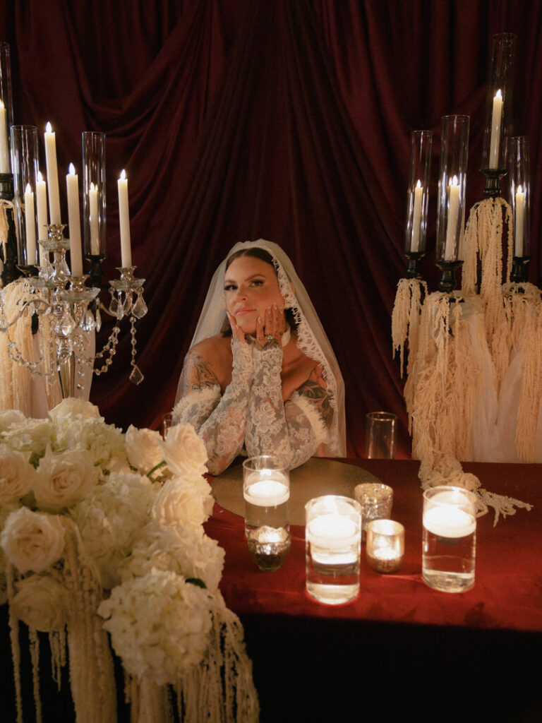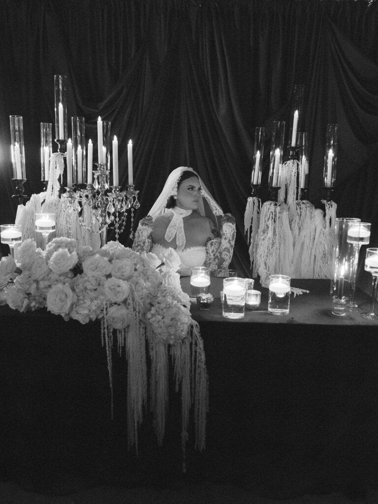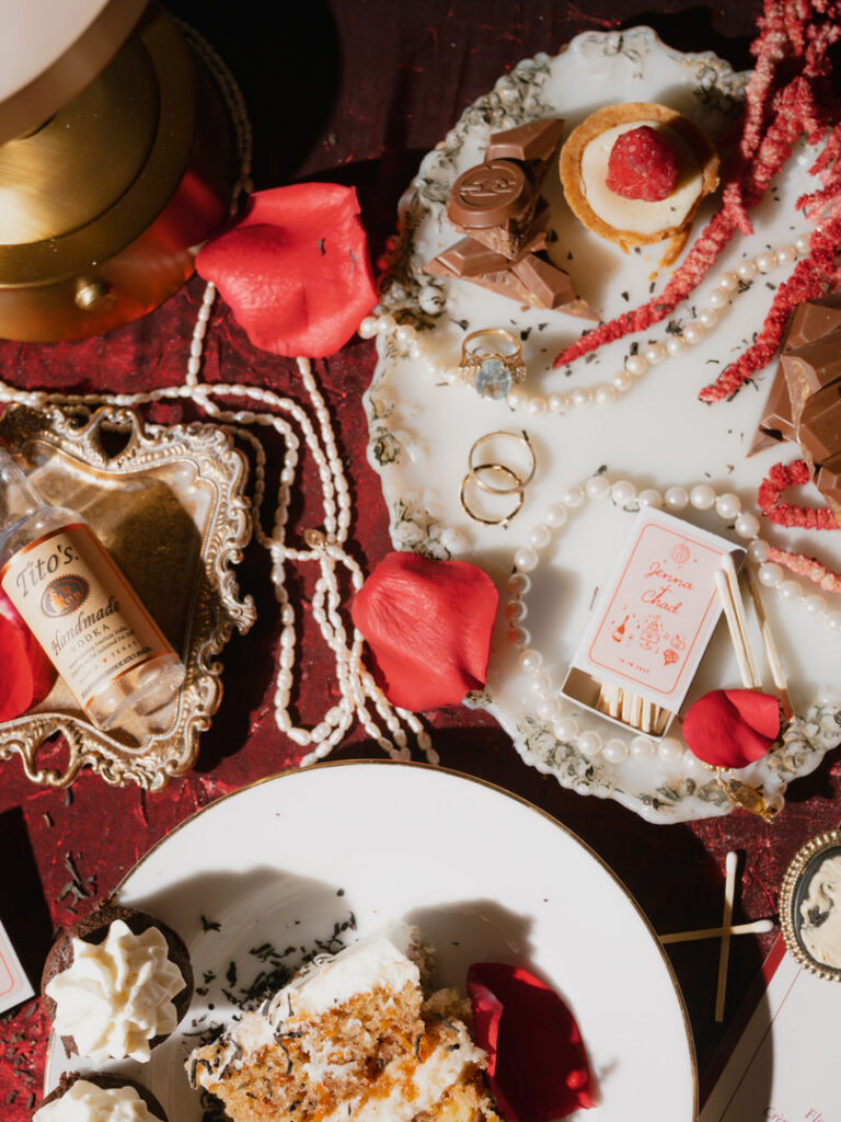On another note, once the dance floor was in full swing, I let my team capture the party while I stepped back for a creative reset. Next, I made a reception flat lay out of all of their details to remember them by and moved some items around their sweetheart table to create a little bridal photo-op for Jenna. We had been imagining this for months together. Therefore, I genuinely couldn’t have been happier with how both of these turned out!