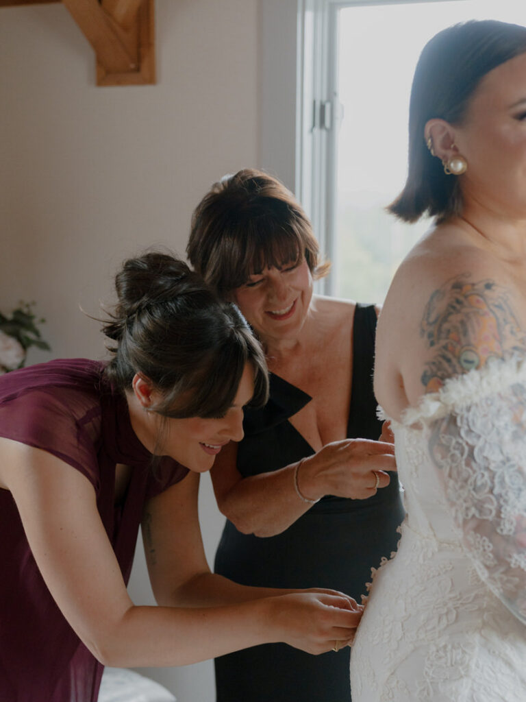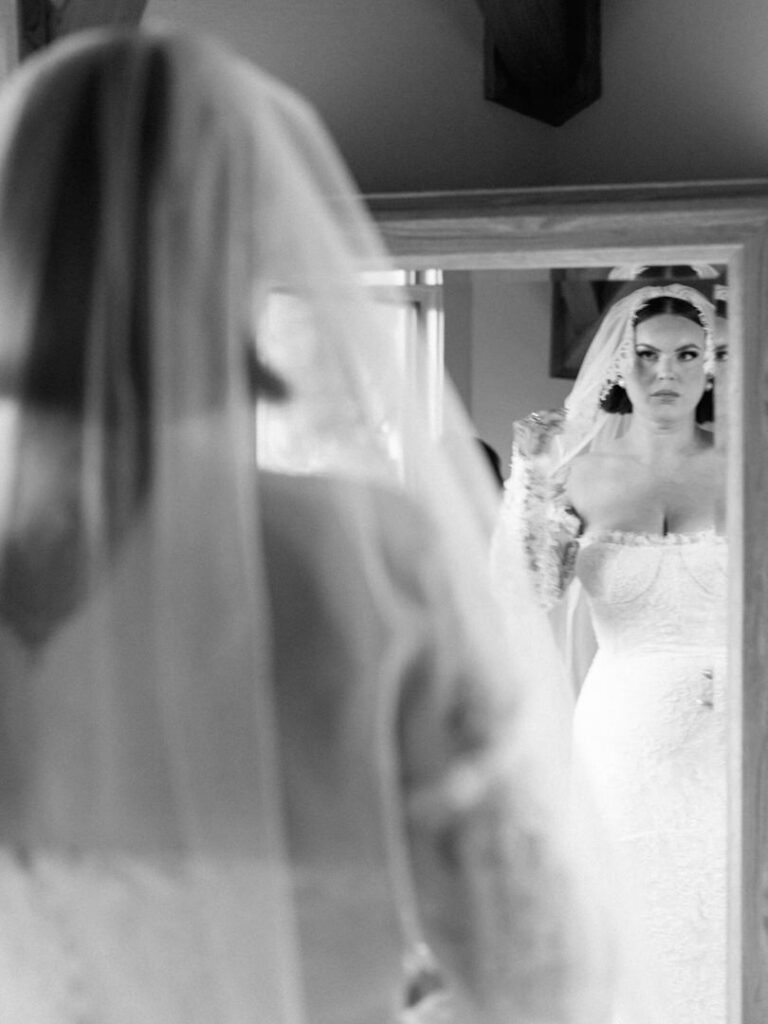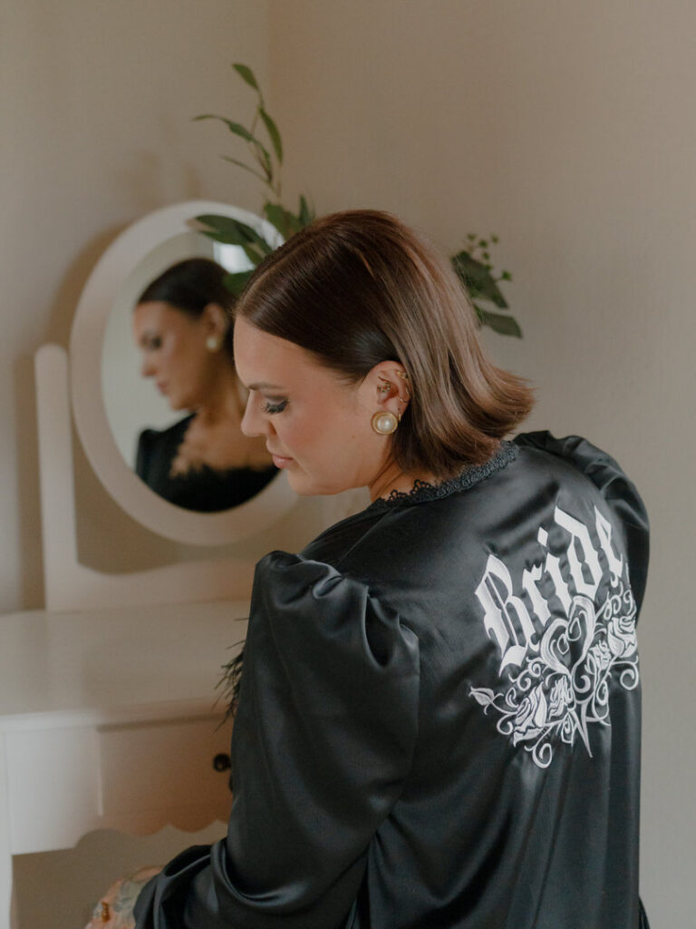 Firstly, Jenna & Chad got dressed on site in the His and Hers bridal suites at Chateau Lill. Another, we loved Jenna’s black getting ready robe and the details of her lace dress and sleeve combo.