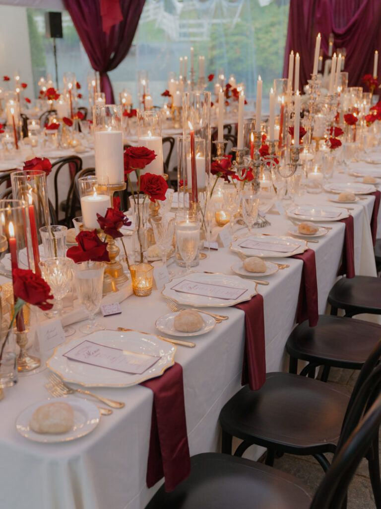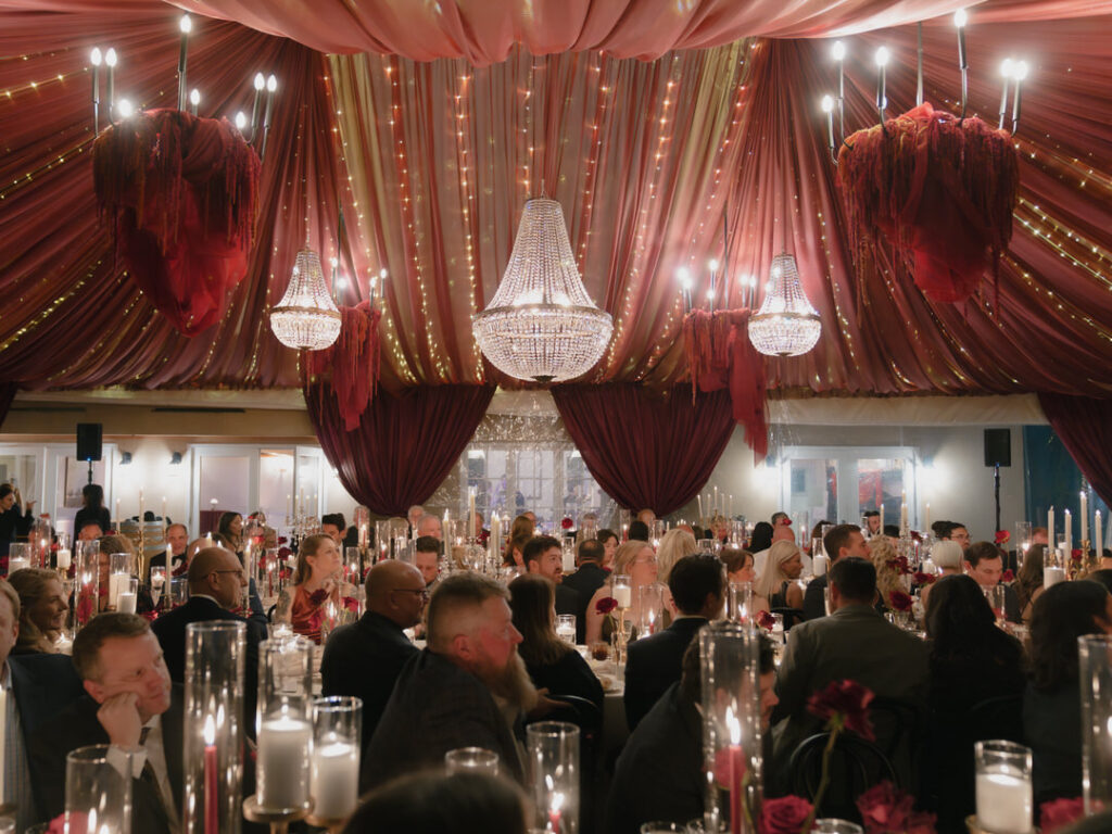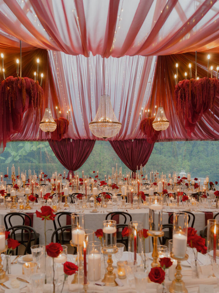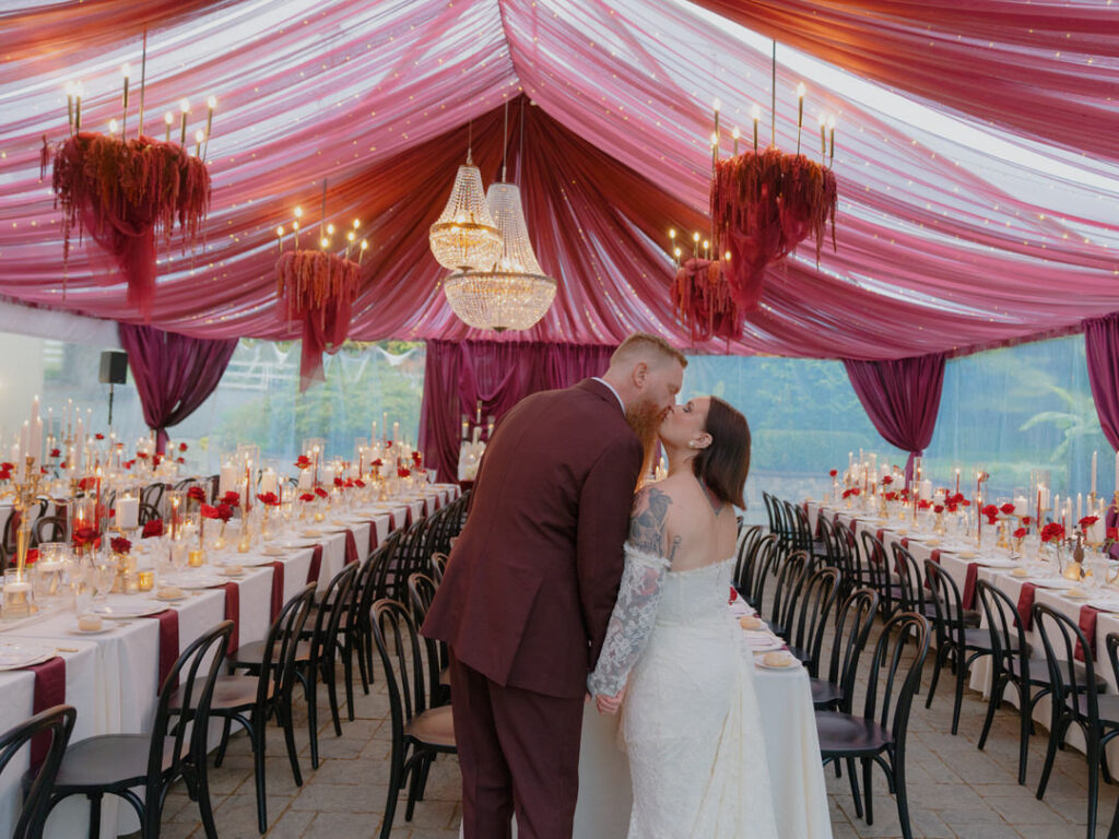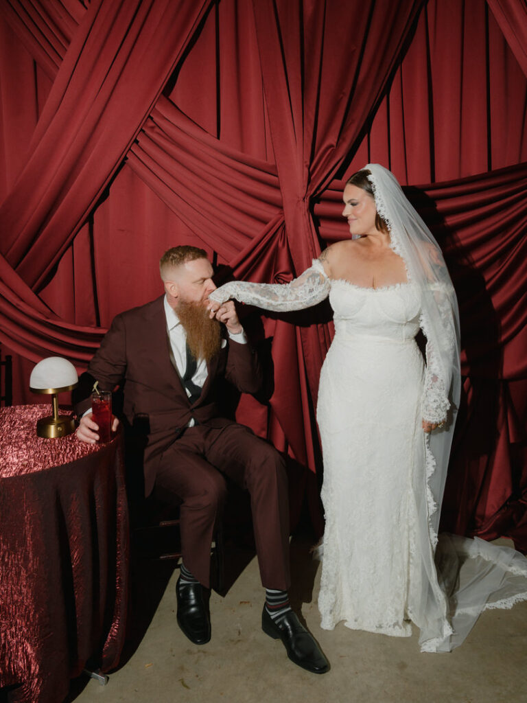 Jenna and Chad transformed the gorgeous wedding venue of Chateau Lill in Woodinville, Washington into a scene of red drapery and romance that we absolutely obsessed over 🥀